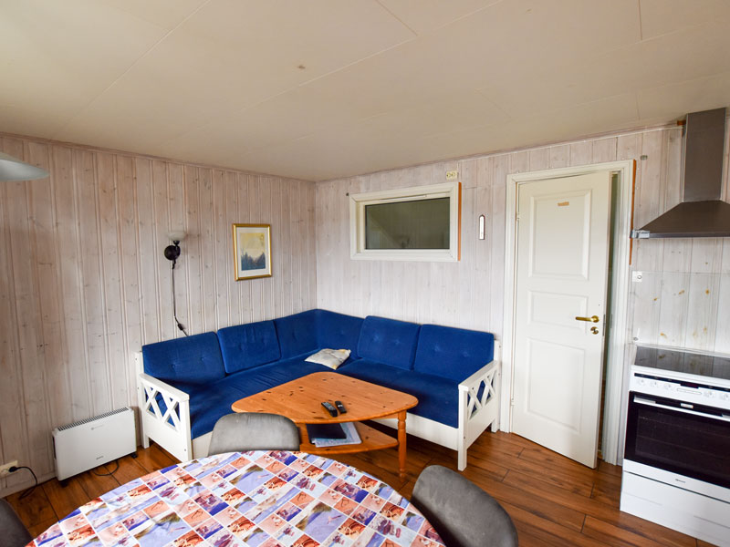 Ferienhaus unweit des Servicegebäudes und des Hafens. Folgende Ausstattung erwartet Sie: Wohnraum mit Sitzgelegenheiten und Fernseher, 3 Schlafzimmer, jeweils mit 2 Einzelbetten; integrierte Küche mit Elektroherd, Backofen, Geschirrspüler, Kühlschrank und Kaffeemaschine. Bad mit Dusche und WC. Zusätzlich verfügen Sie über einen Extraraum für Angelsachen, in dem auch die Gefriertruhe steht. Teilüberdachte, möblierte Terrasse vorhanden.