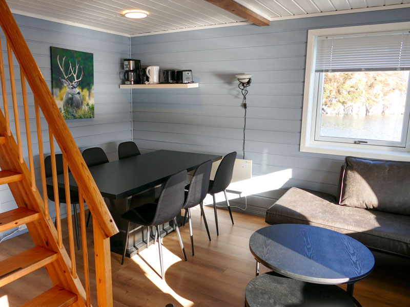 Hierbei handelt es sich um zwei empfehlenswerte Wohnungen im Obergeschoss des Rorbu am Hafen mit folgender Ausstattung: Wohnzimmer mit Polstermöbeln, Fernseher und Essplatz. Integrierte Küche mit Elektroherd, Backofen, Kühl-Gefrier-Kombination, Geschirrspüler, Mikrowelle und Kaffeemaschine. Geräumiges Bad mit Dusche und WC. Ein Schlafzimmer mit 2 Einzelbetten. Über eine Treppe gelangen Sie in den ausgebauten Dachbereich (normale Stehhöhe) mit 2 Schlafzimmern mit jeweils 2 Einzelbetten. Angelgeräteverleih vorhanden. Ihr Gastgeber spricht Deutsch.