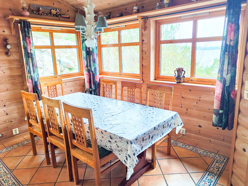 Außerdem steht für dieses Haus ein Nebengebäude mit fließendem Wasser zur Fischreinigung zur Verfügung. In diesem sind auch die Gefriertruhen und die Waschmaschine untergebracht. Der Außenbereich verfügt über mehrere Terrassenbereiche mit bequemen Gartenmöbeln. Herrlicher Blick auf das Meer. Im Außenbereich steht auch eine Räucherkammer bereit. Sauna vorhanden.