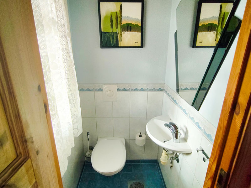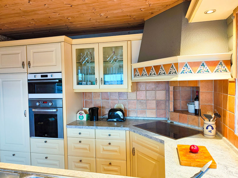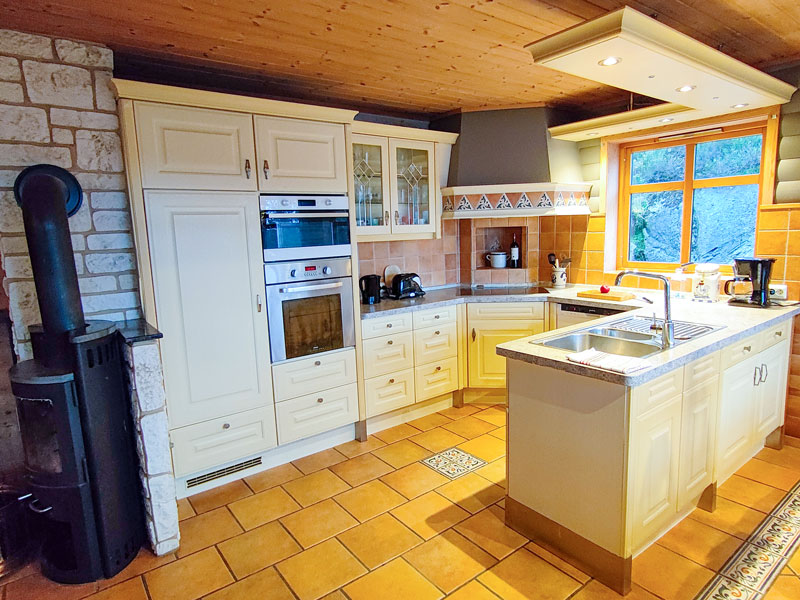 Viele Annehmlichkeiten erwarten Sie in dem schönen, auf einer Anhöhe errichteten Ferienhaus. Folgende Aufteilung finden Sie vor: Erdgeschoss: großer Wohnraum mit bequemen Polstermöbeln, Smart-TV (Streamen deutscher Programme möglich), Holzofen und Essplatz; komplett ausgestattete Küche mit Cerankochfeld, Backofen, Kühlschrank, Geschirrspüler, Mikrowelle, Toaster, Kaffeemaschine und Wasserkocher; 2 Schlafzimmer mit jeweils 2 Einzelbetten; großes Bad mit Dusche, Badewanne und WC. Im Obergeschoss gibt es einen zweiten Wohnbereich, ein WC und 2 Schlafzimmer mit jeweils 2 Einzelbetten.